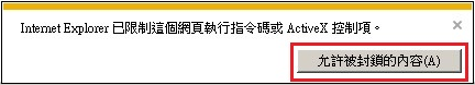 | 2. | 開啟「建議書程式」時,網頁瀏覽器上方若出現ActiveX黃色警示訊息,須點選「允許」。 |